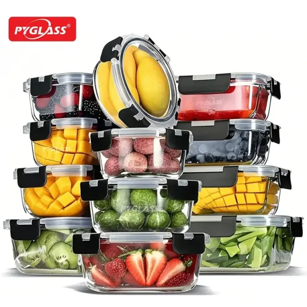 Recipientes de armazenamento de vidro com tampas de vidro Conjunto de 12 | Fábrica de atacado e OEM | PYGLASS
