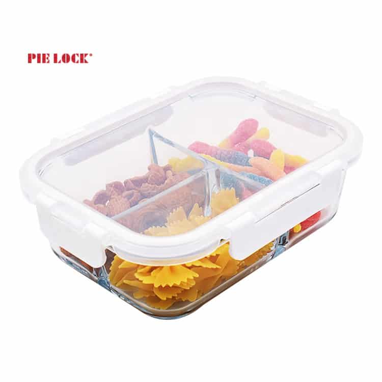 Recipientes de venda quente com 3 compartimentos, recipientes de vidro para armazenamento de alimentos com tampas